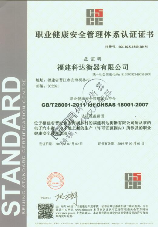 科達地磅通過職業(yè)健康體系認證